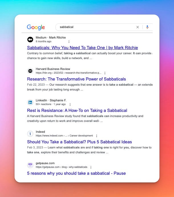 You can take some time off even if you don't quit your job like I did. I know people who have negotiated paid—or partly paid—sabbaticals with their employers. When I resigned, I, too, was offered a sabbatical, but I was too burnt out at the time to even consider that offer. I needed a clean break. Thus far, I've treated my time off much like a sabbatical. Historically, sabbaticals were a period off for study, travel, rest, and pursuing personal interests, and it was something university professors would do occasionally to stay relevant. If quitting feels like a drastic move, consider discussing sabbatical options with your employer, highlighting how it can benefit you and the company by preventing burnout and renewing productivity.