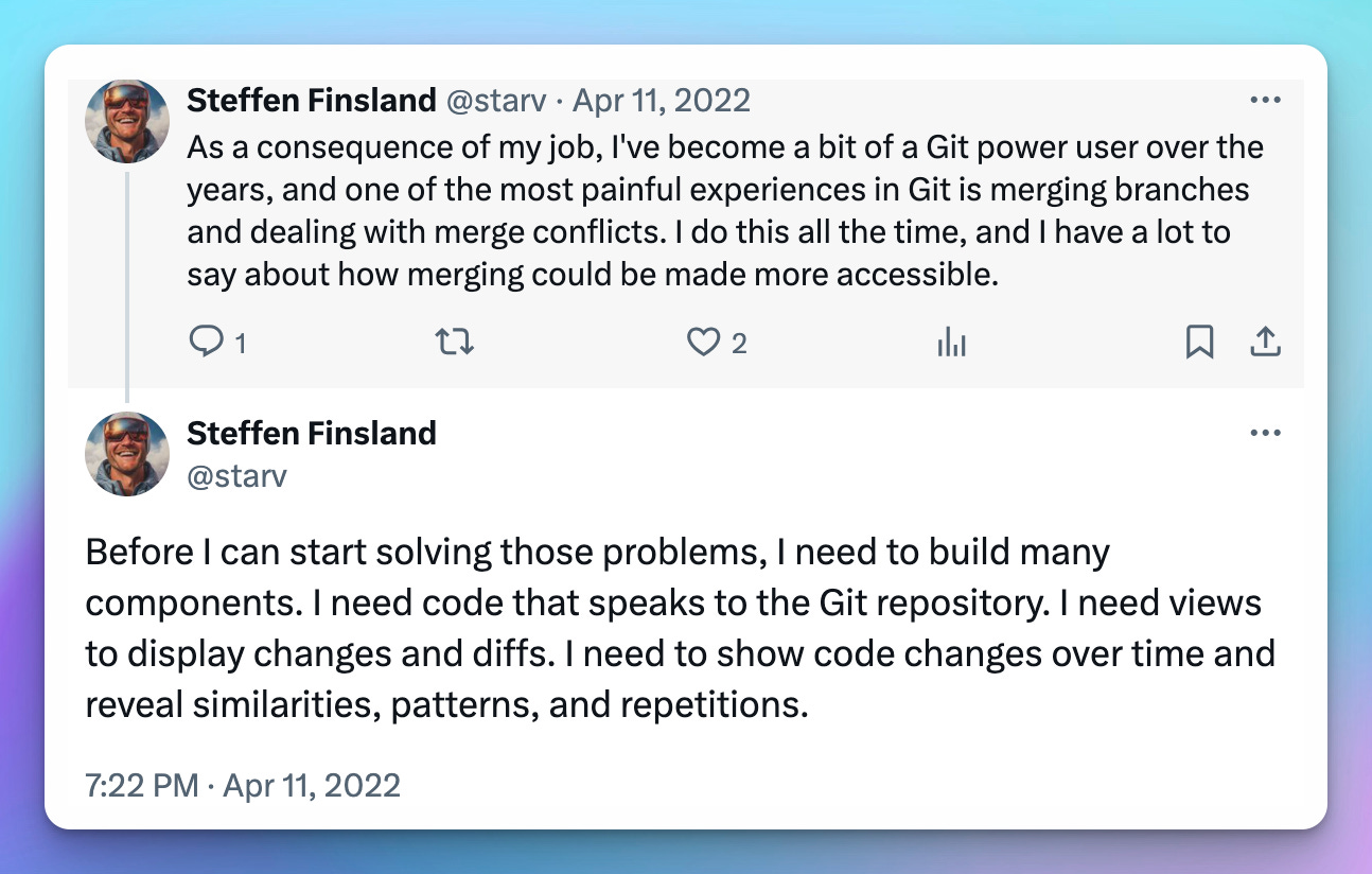 When I started this project a year ago, I said that merge conflicts was a central problem I wanted to solve. That was always the plan.